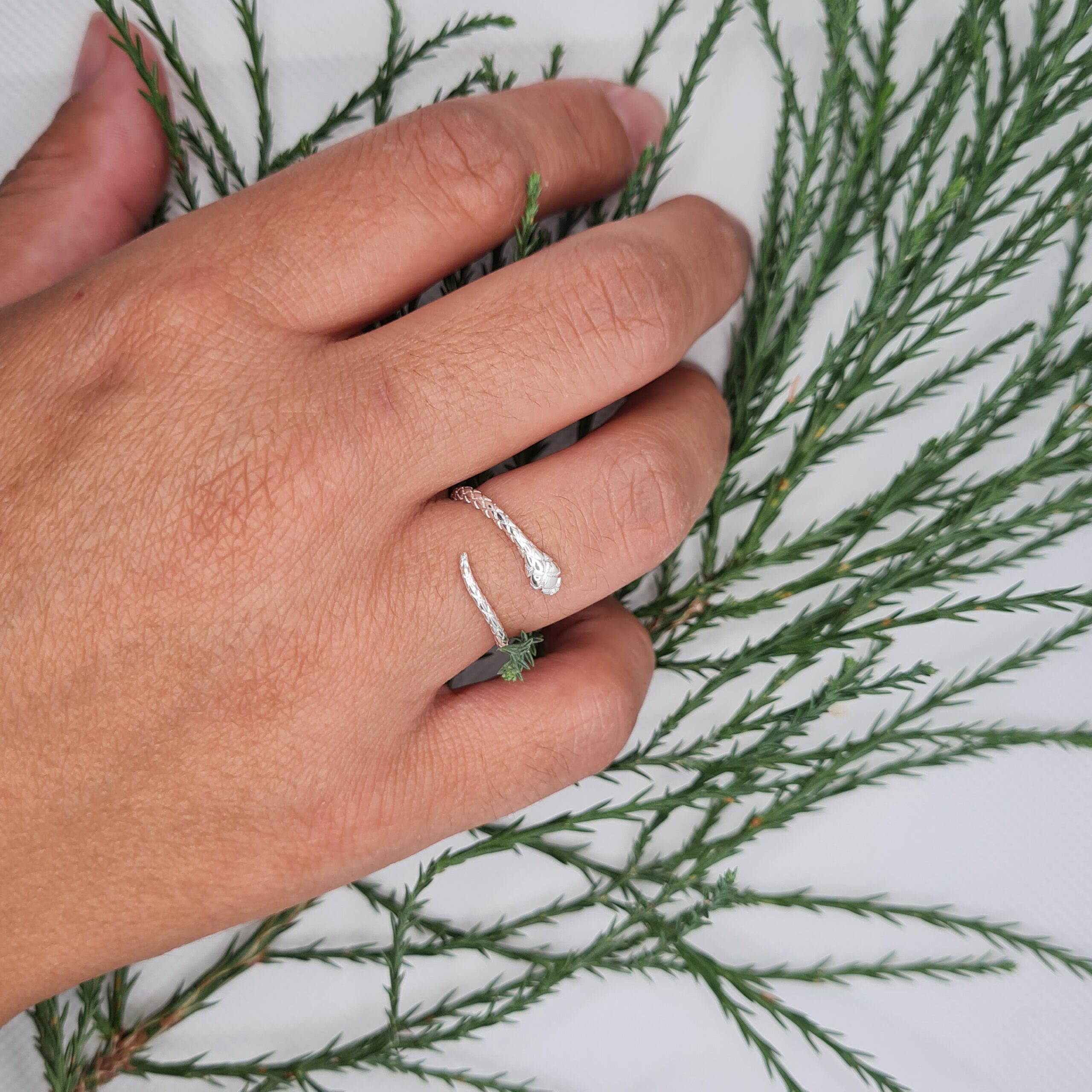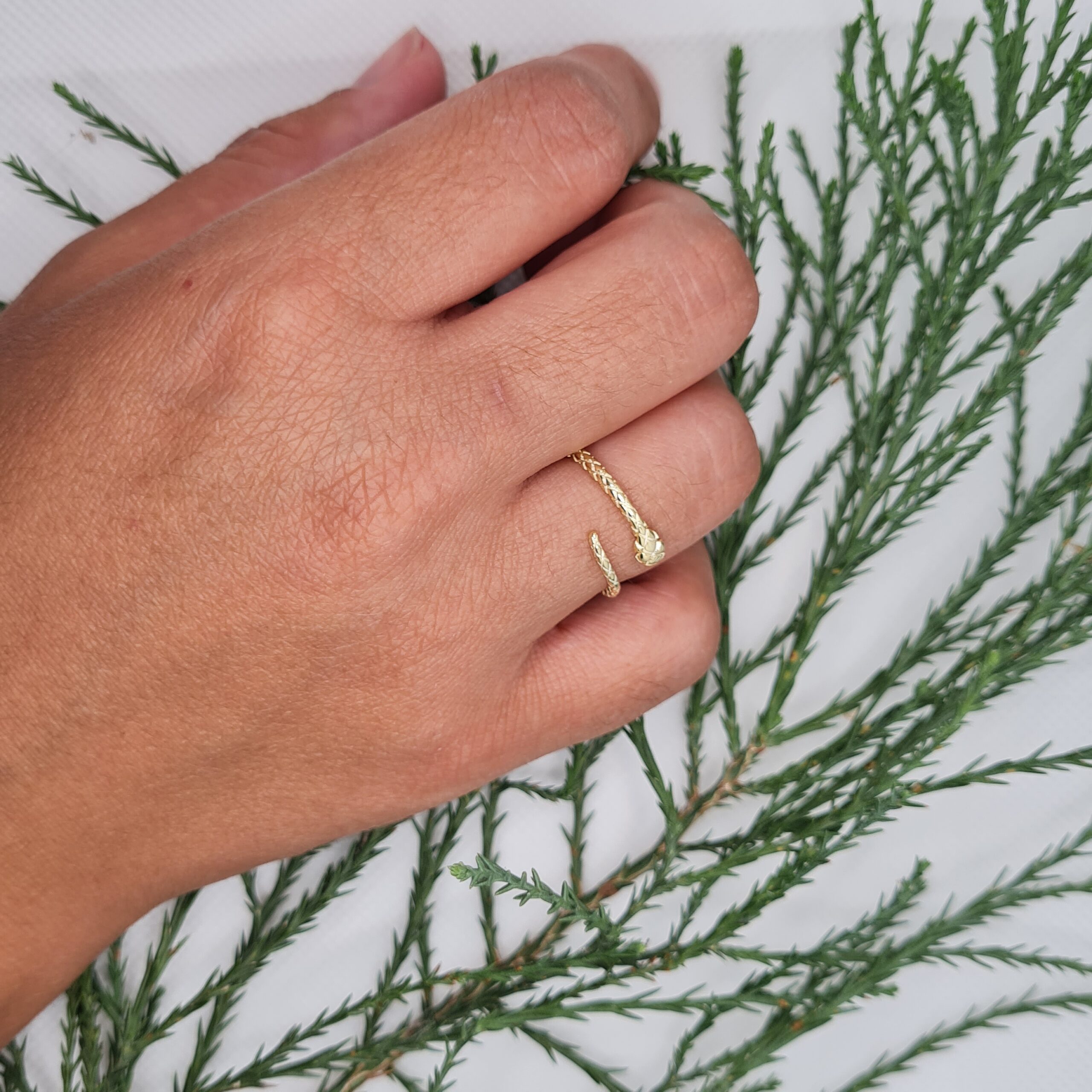 Casi mitológica, esta trepadora serpiente se ajusta a tu dedo dándole un toque de misterio y sensualidad.